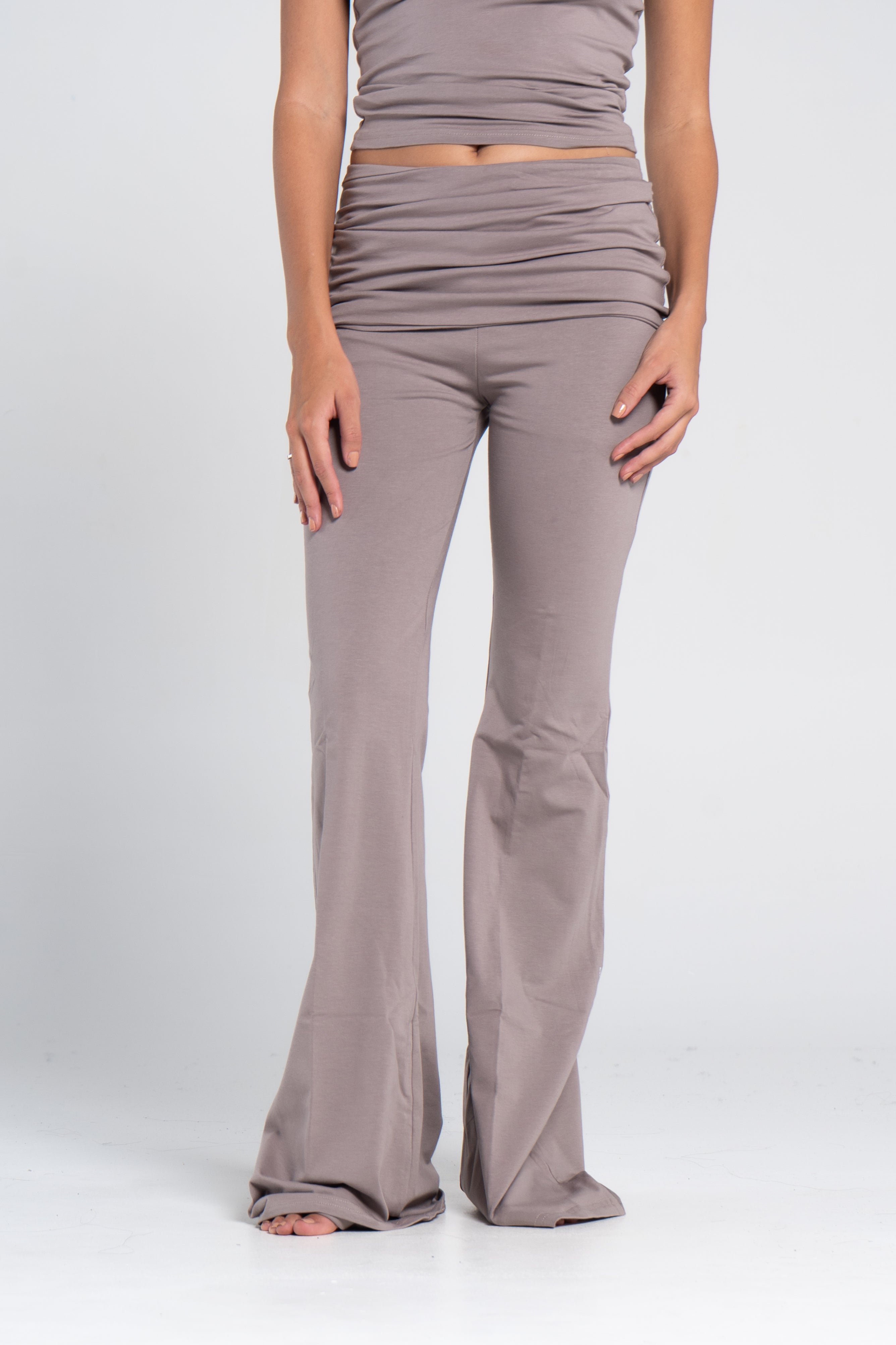 The Cotton Folded Yoga Pants are all about comfort. Made from soft, breathable cotton, they feature an adjustable fold-over waistband so you can wear them high, mid, or low — however you like it. These pants move with you while giving a smooth, sculpted fit that works for yoga, lounging, or your everyday lineup.