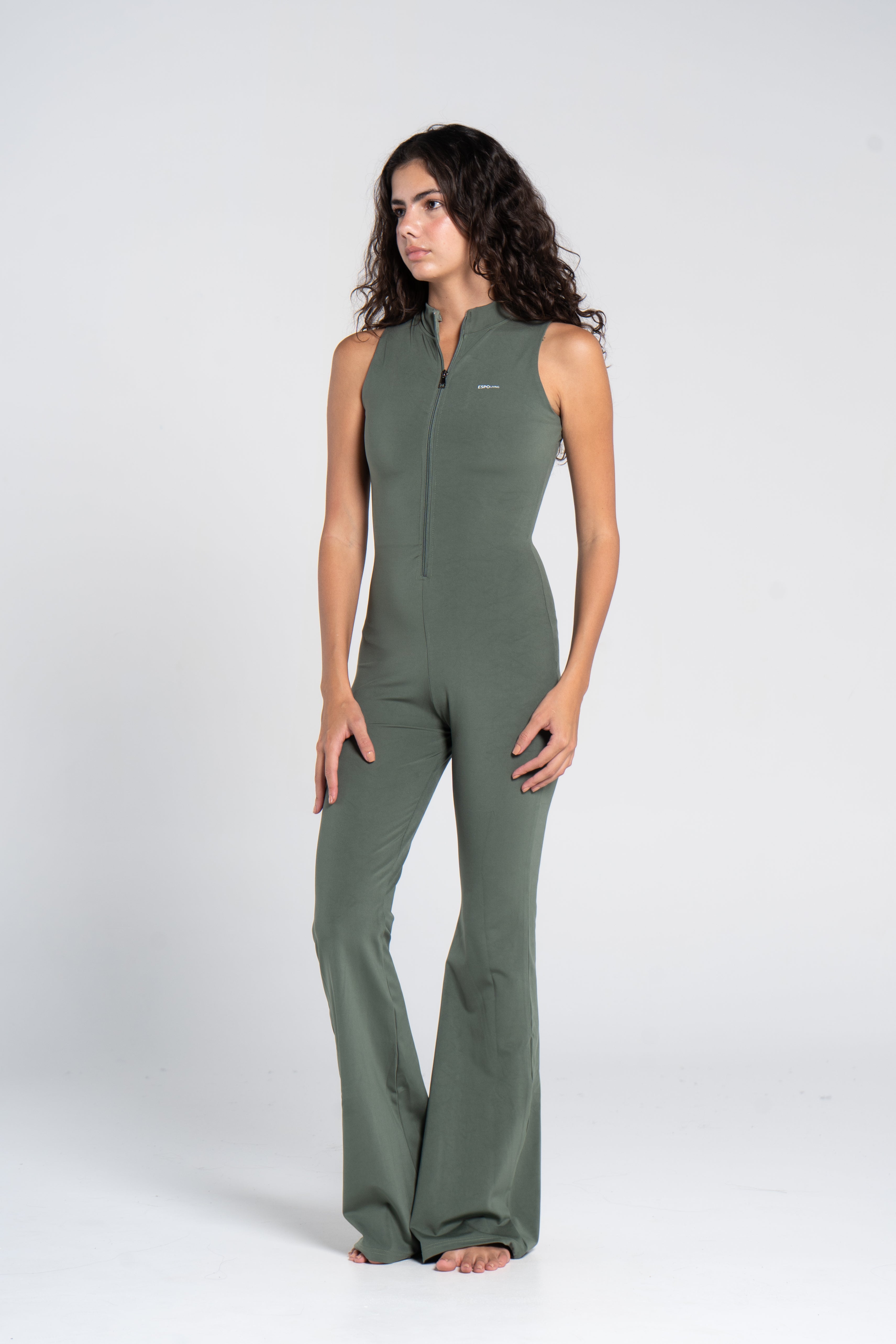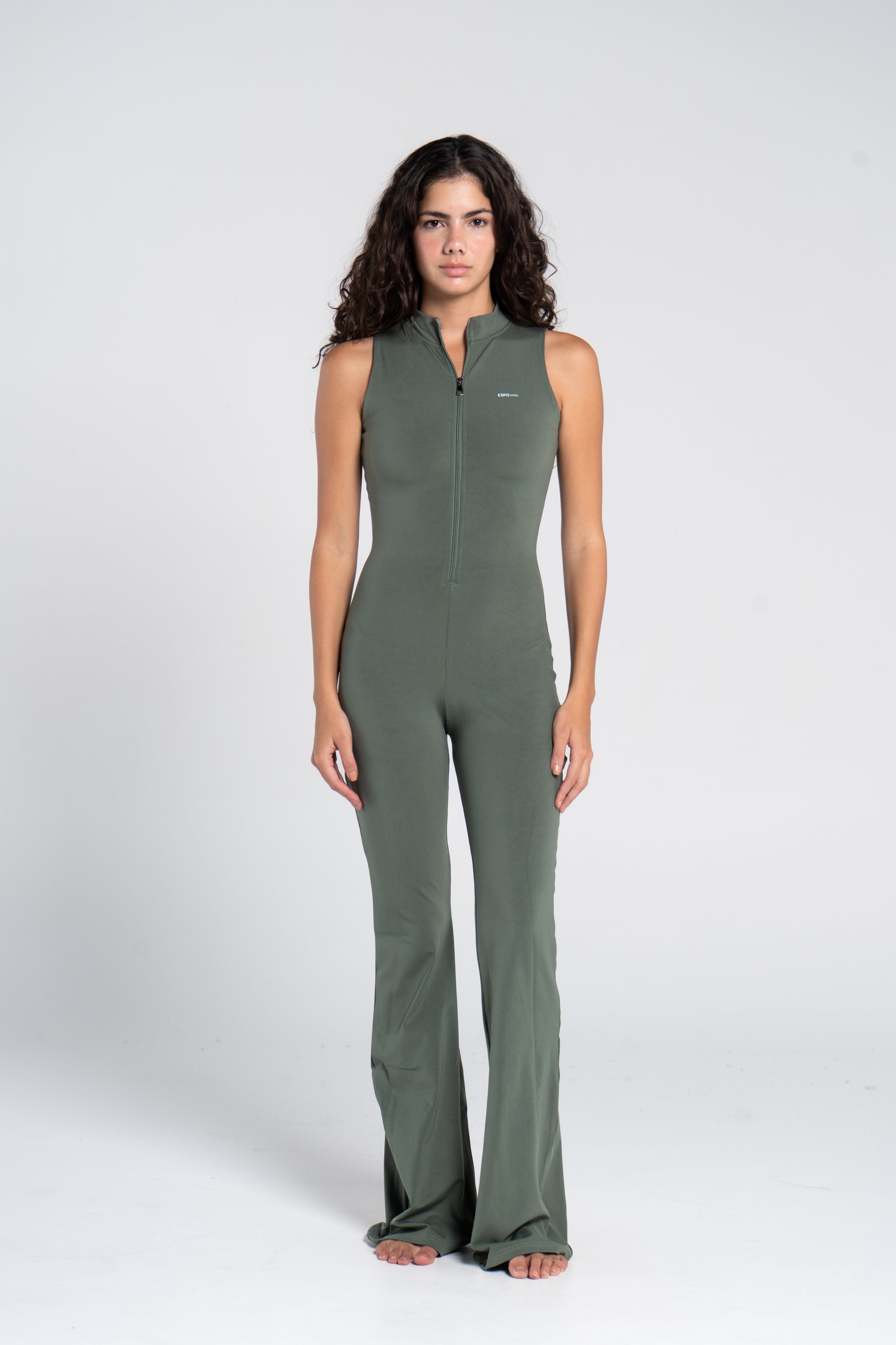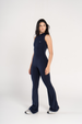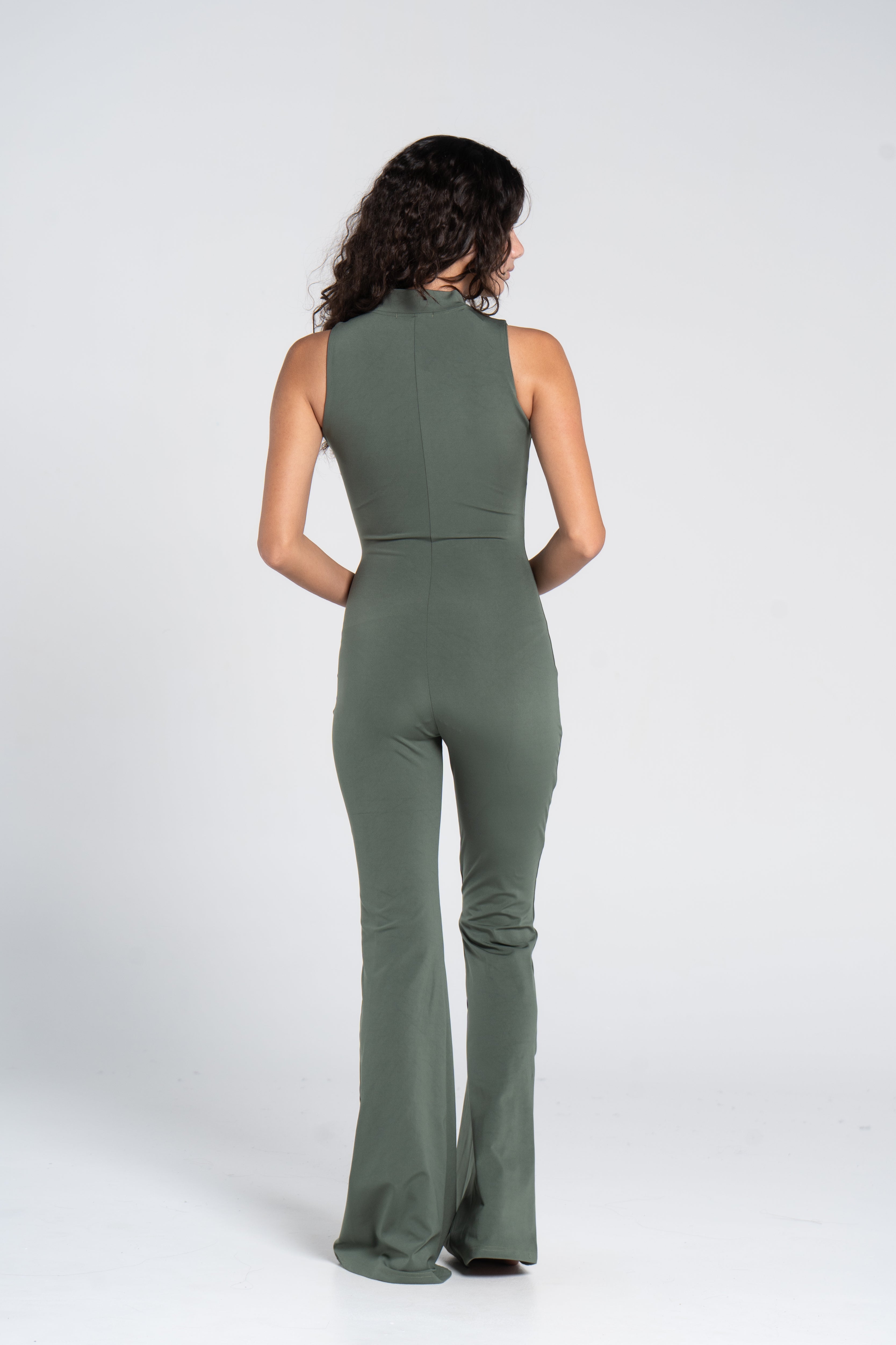 The High Neck Flared Sleeveless Jumpsuit is crafted from our highly developed, Super Sculpt fabric. This seamless, stretchy material provides targeted compression, delivering a smooth, flattering fit that contours your body perfectly. The sleeveless cut enhances breathability and freedom of movement, while the exposed front zip fastening ensures effortless wear and a sleek, modern edge.