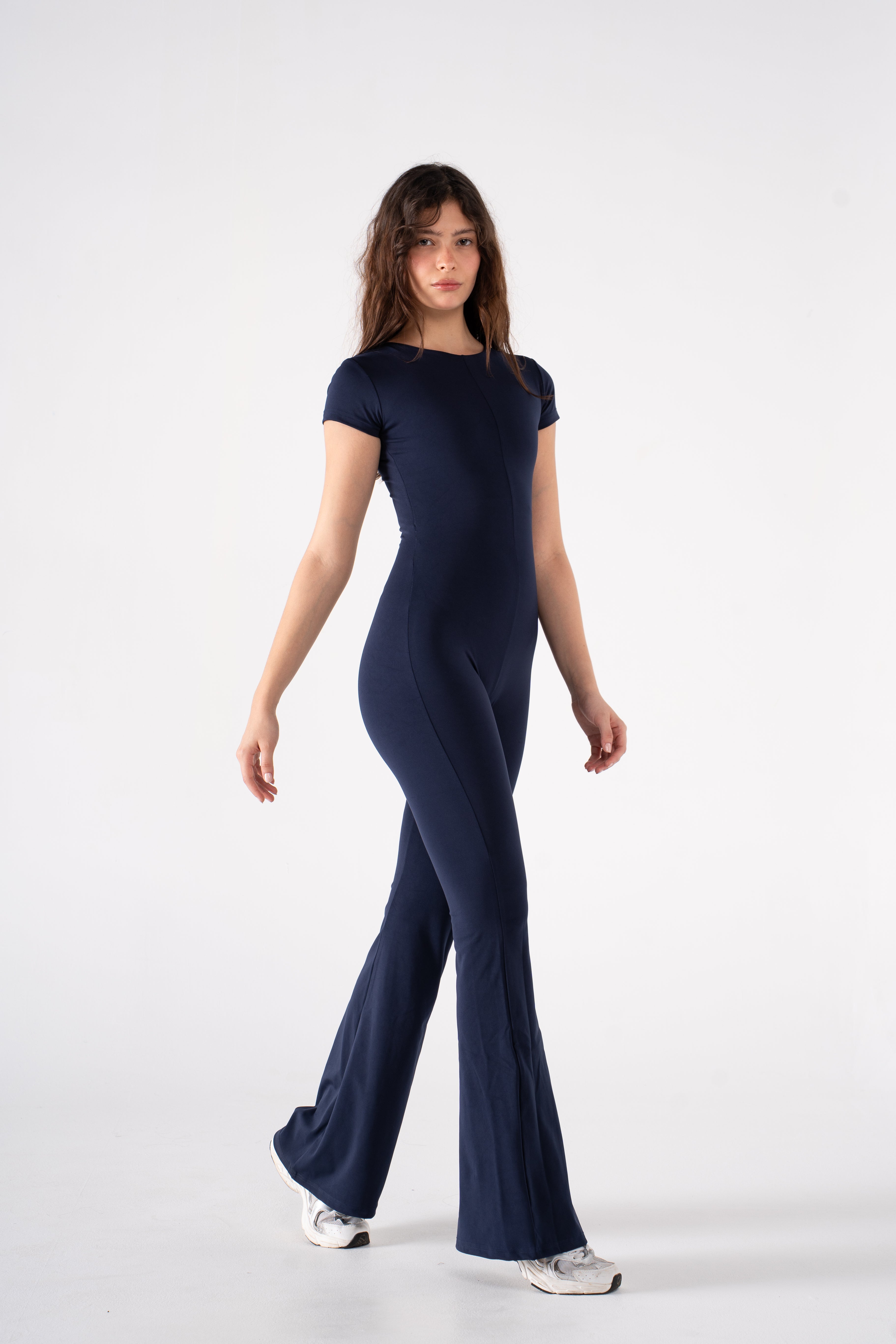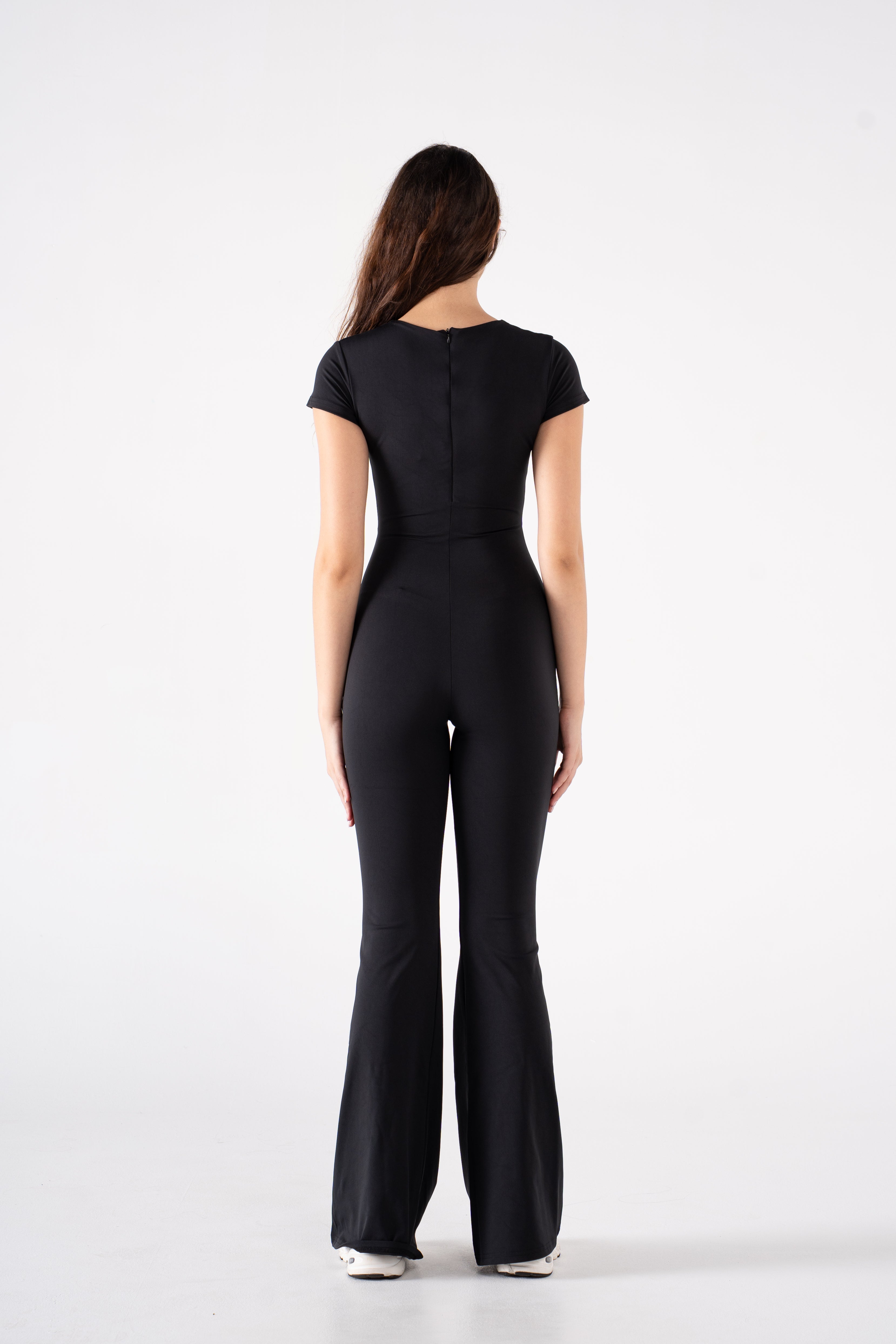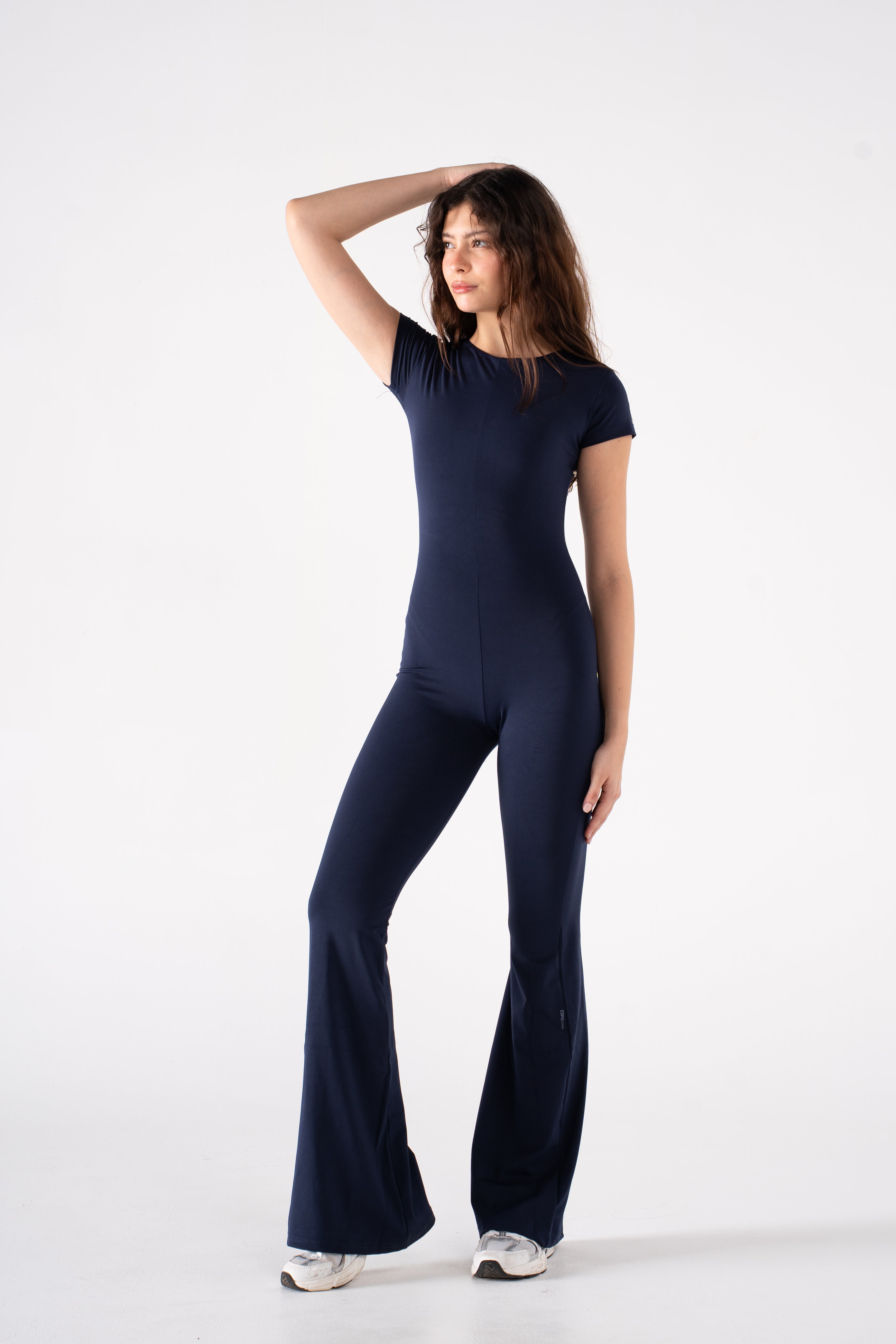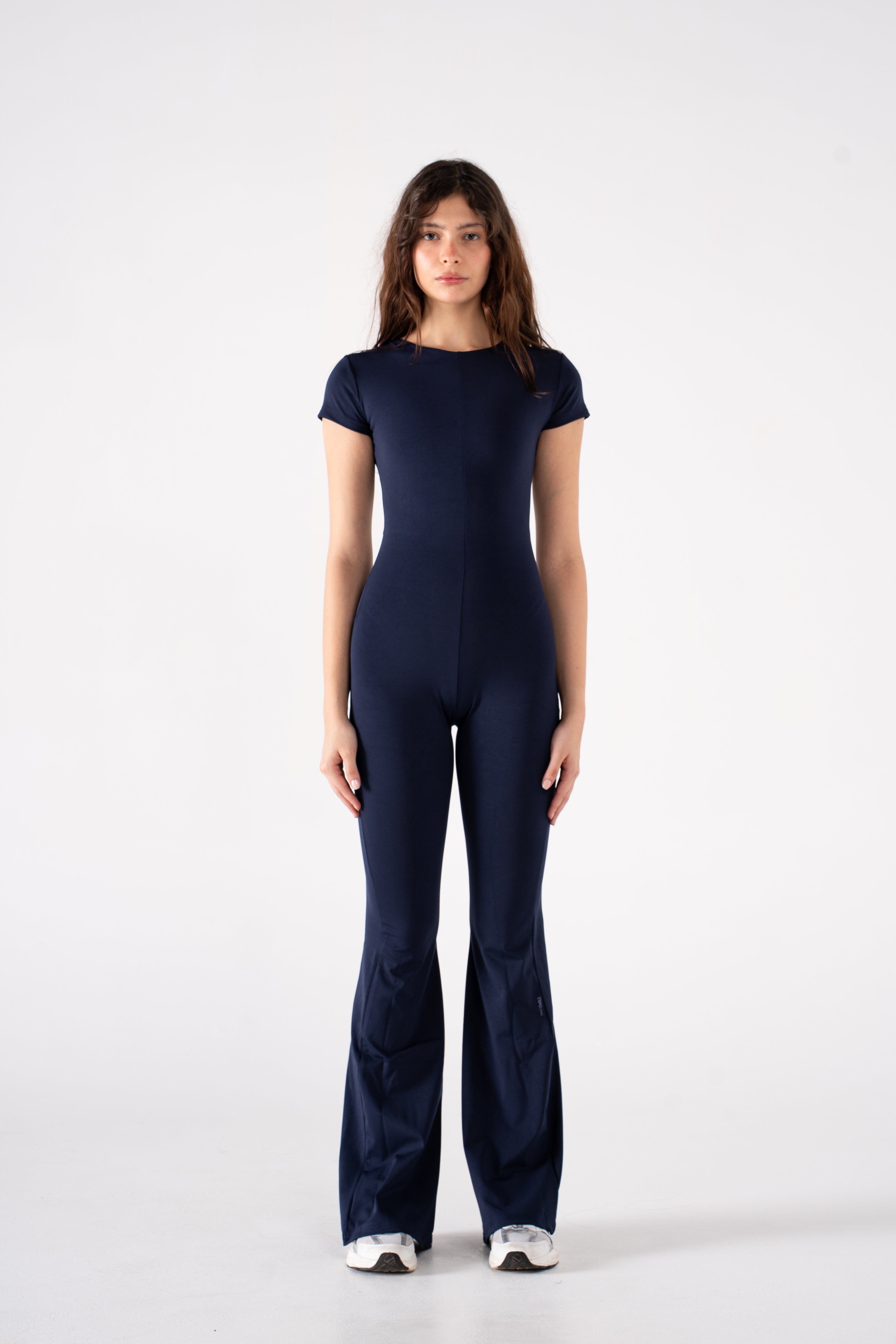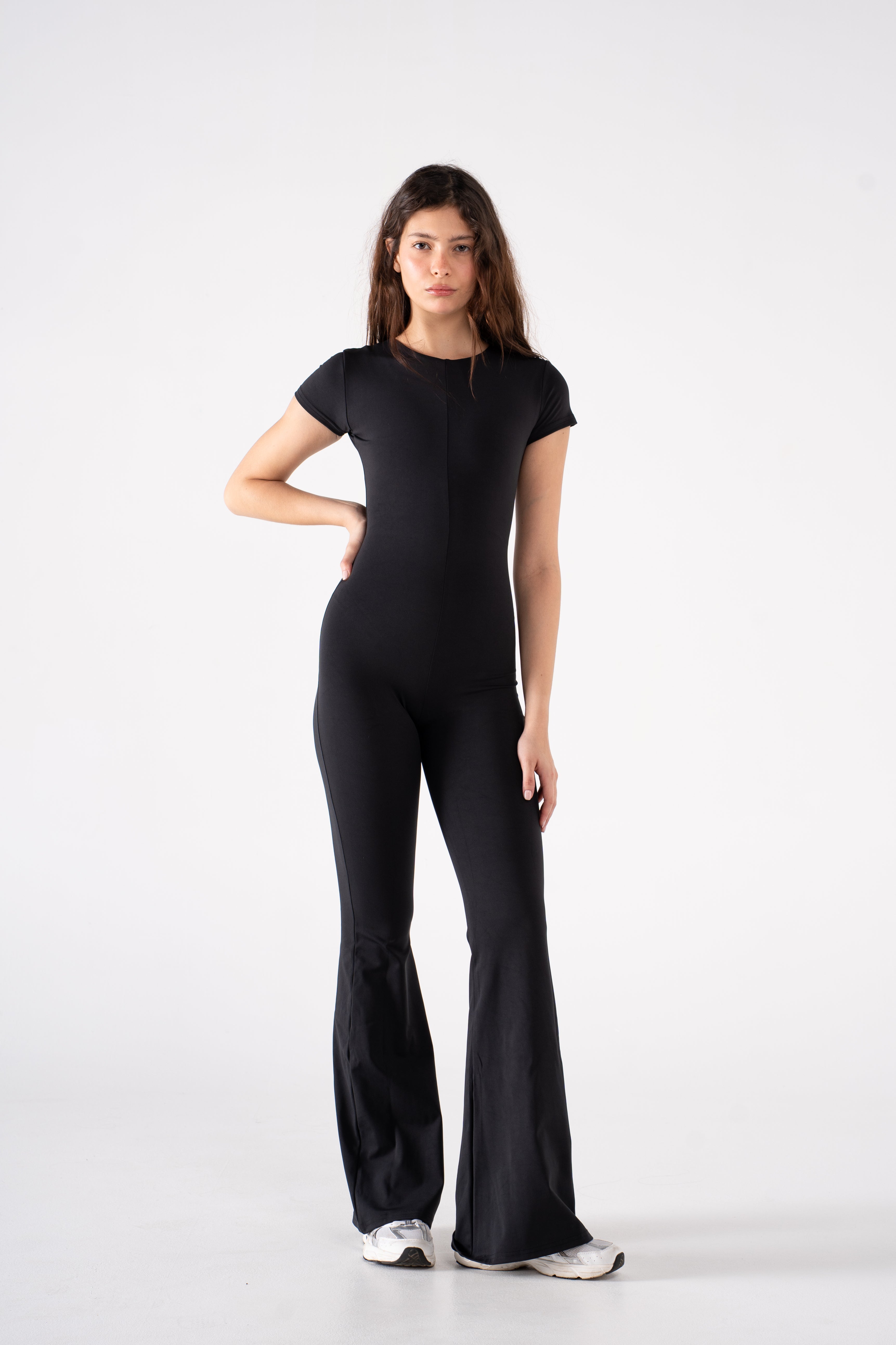 A sleek essential designed to do it all. This all-in-one silhouette combines everyday ease with an elevated edge. Crafted from our signature Super Sculpt fabric, it offers breathable compression that contours and moves with you—ideal for low-impact days when comfort and polish go hand in hand. Featuring a round neckline and short sleeves for a sleek, balanced look, and finished with a flared leg for a lengthening touch.
